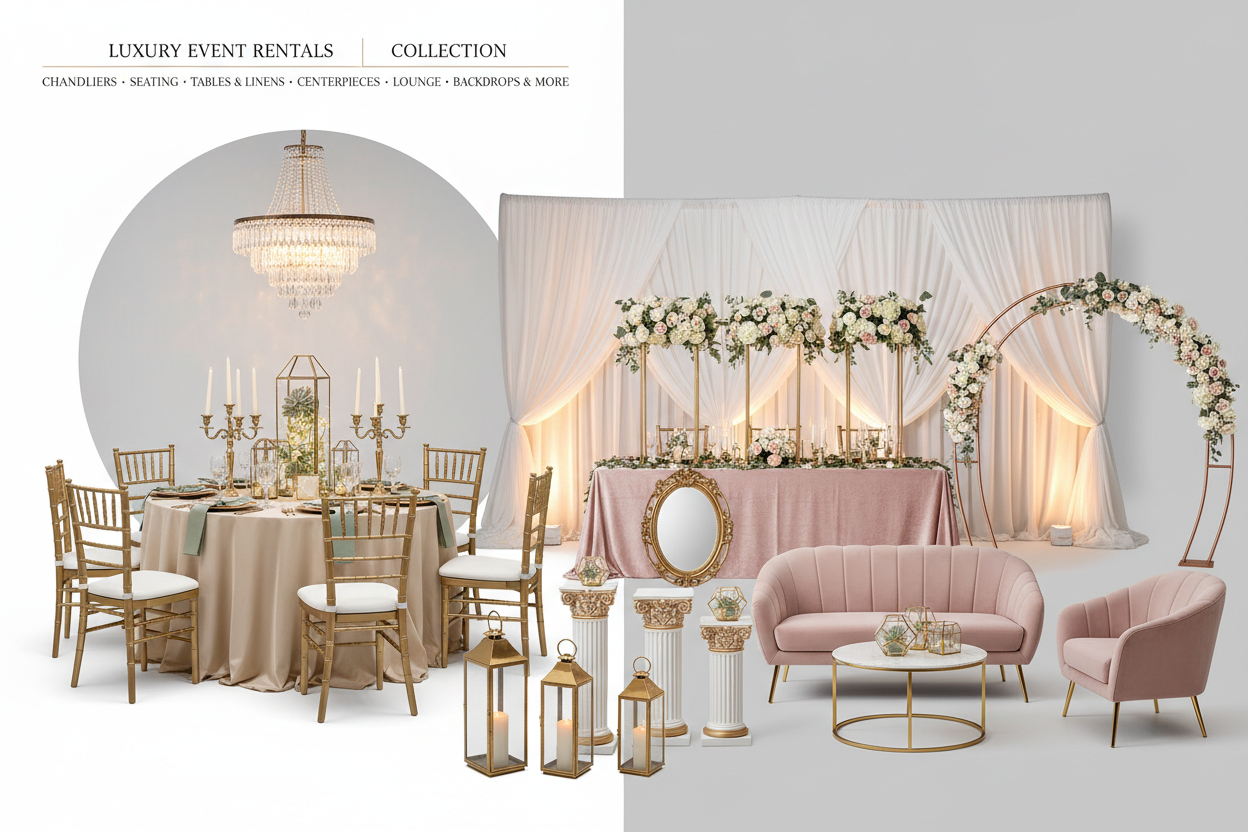 Premium event rentals and décors that transform ordinary spaces into experiences filled with charm and splendor.